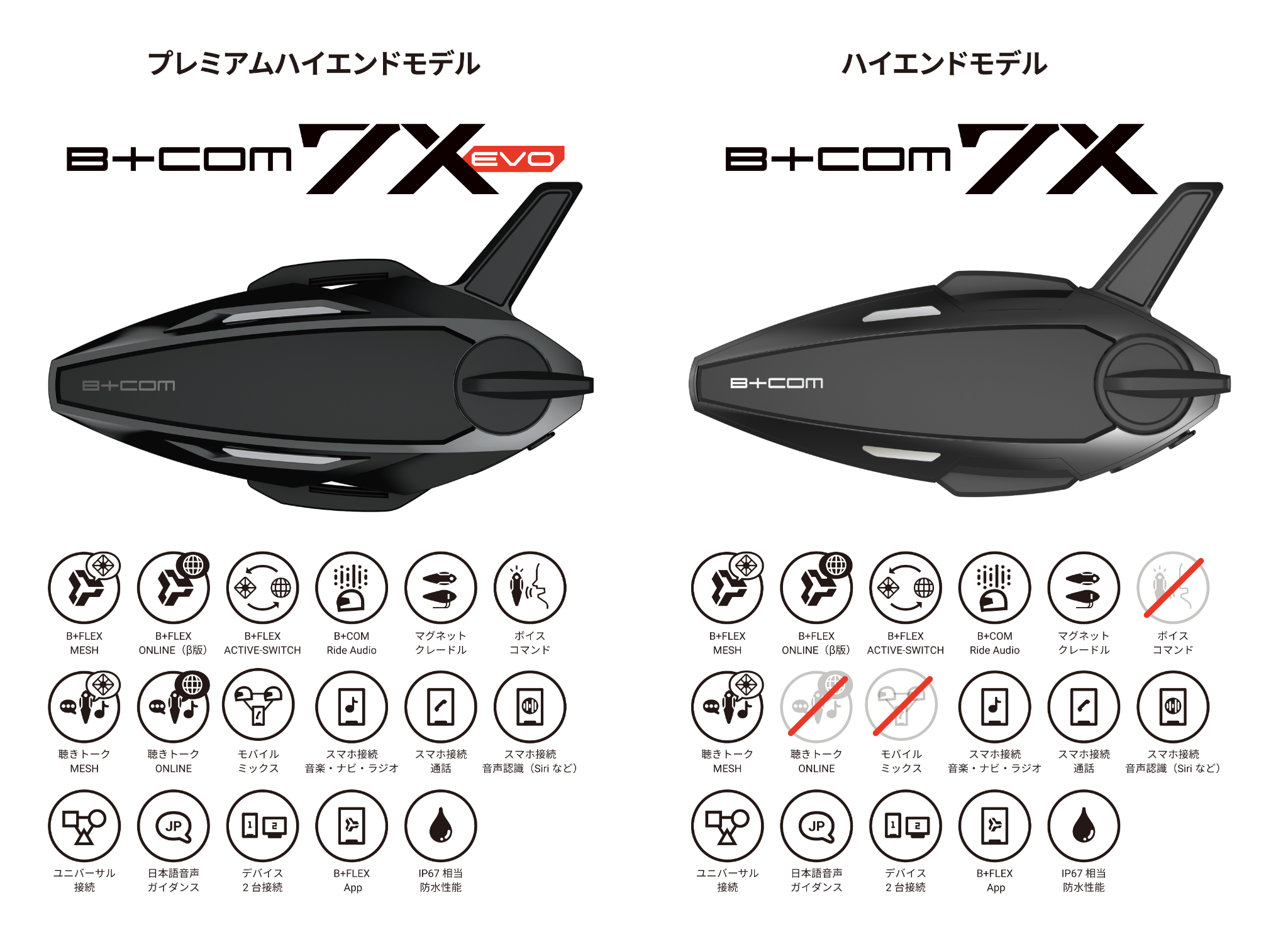 ■上位モデル「B+COM 7X EVO」との主な相違点
