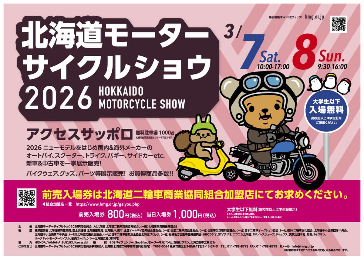 「北海道モーターサイクルショウ2026」にて、サイン・ハウス スタッフによる製品体験会を開催いたします!