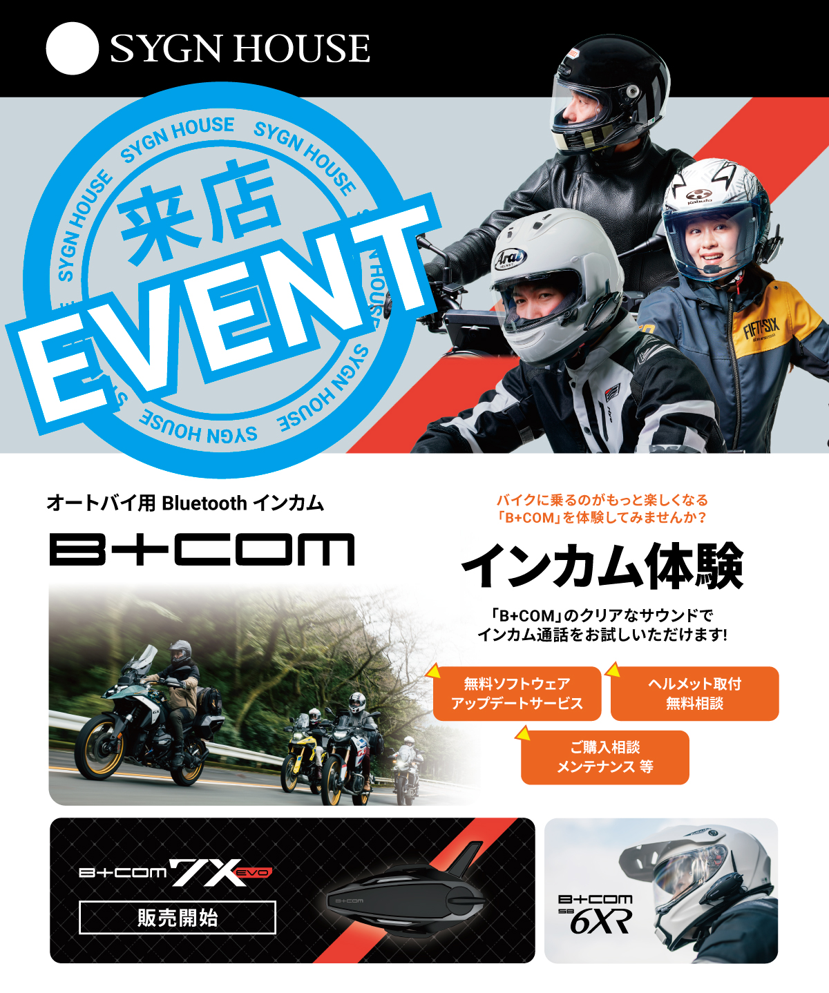 プレミアムハイエンドモデル「B+COM 7X EVO」、「SB6XR」 を展示いたします。